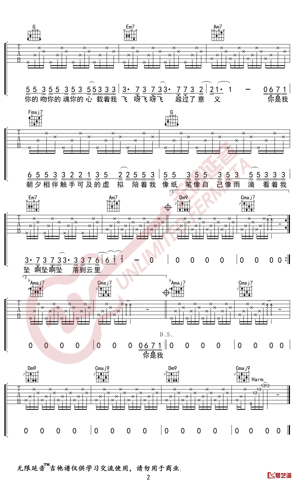 陈粒《虚拟》吉他谱六线谱C调弹唱谱
