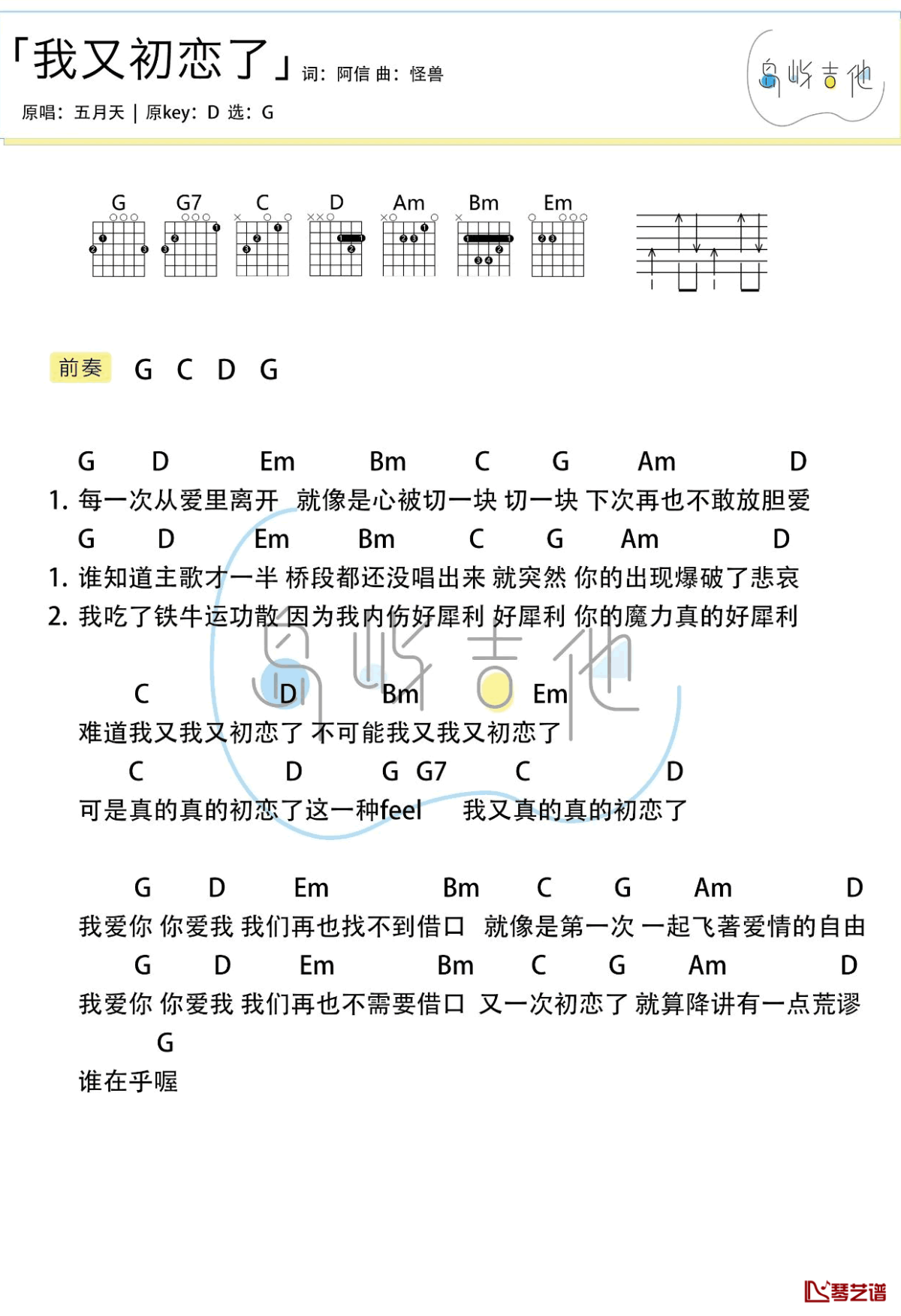 五月天《我又初恋了》吉他谱六线谱附教学视频