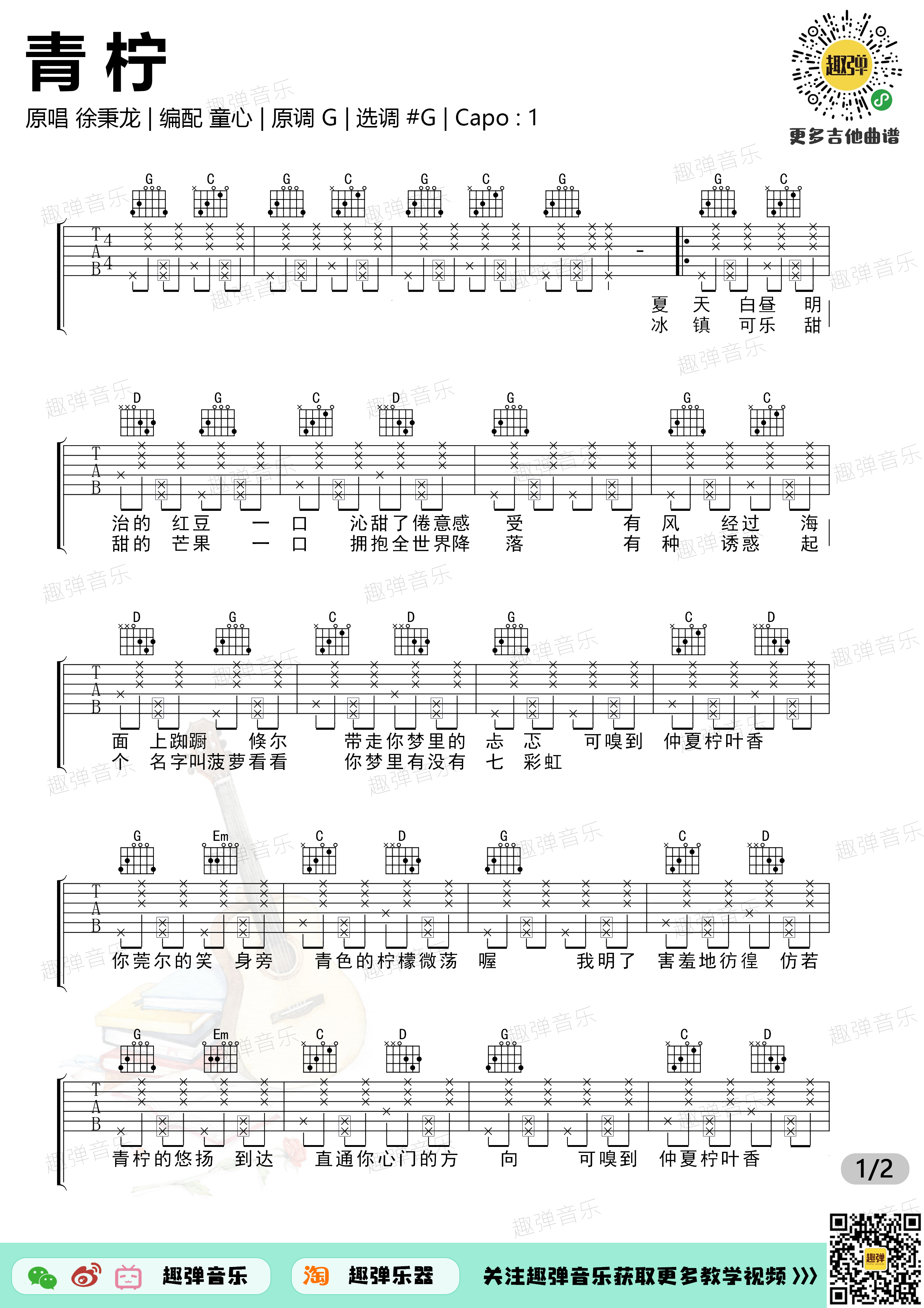 徐秉龙《青柠》吉他弹唱谱