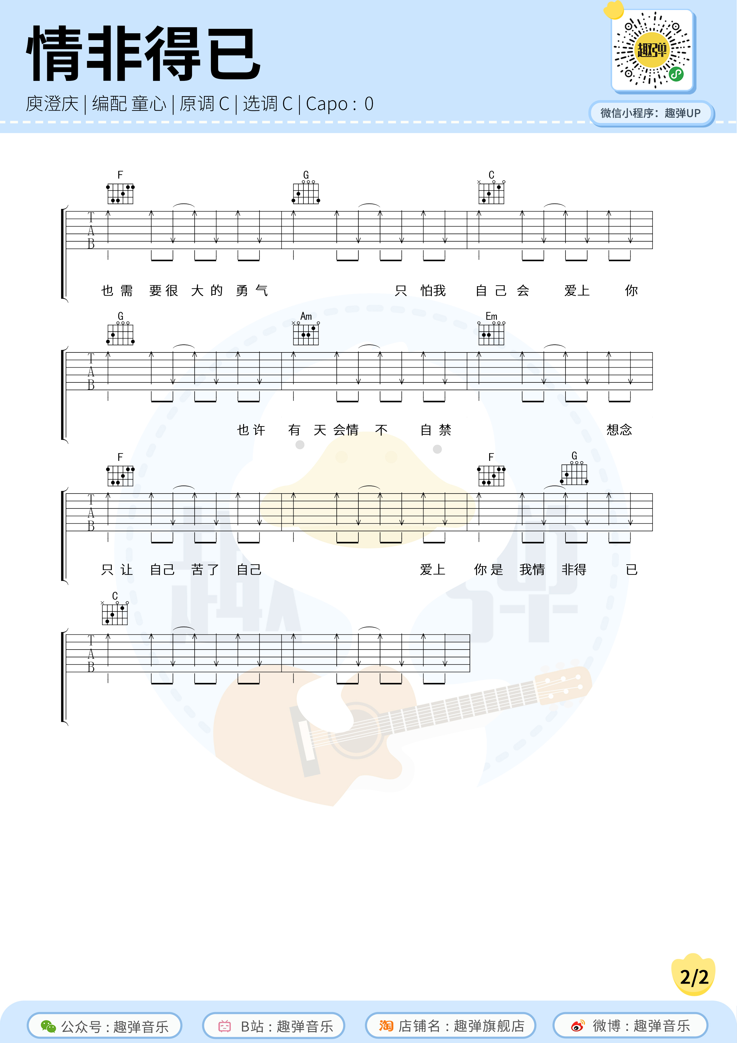 情非得已吉他谱