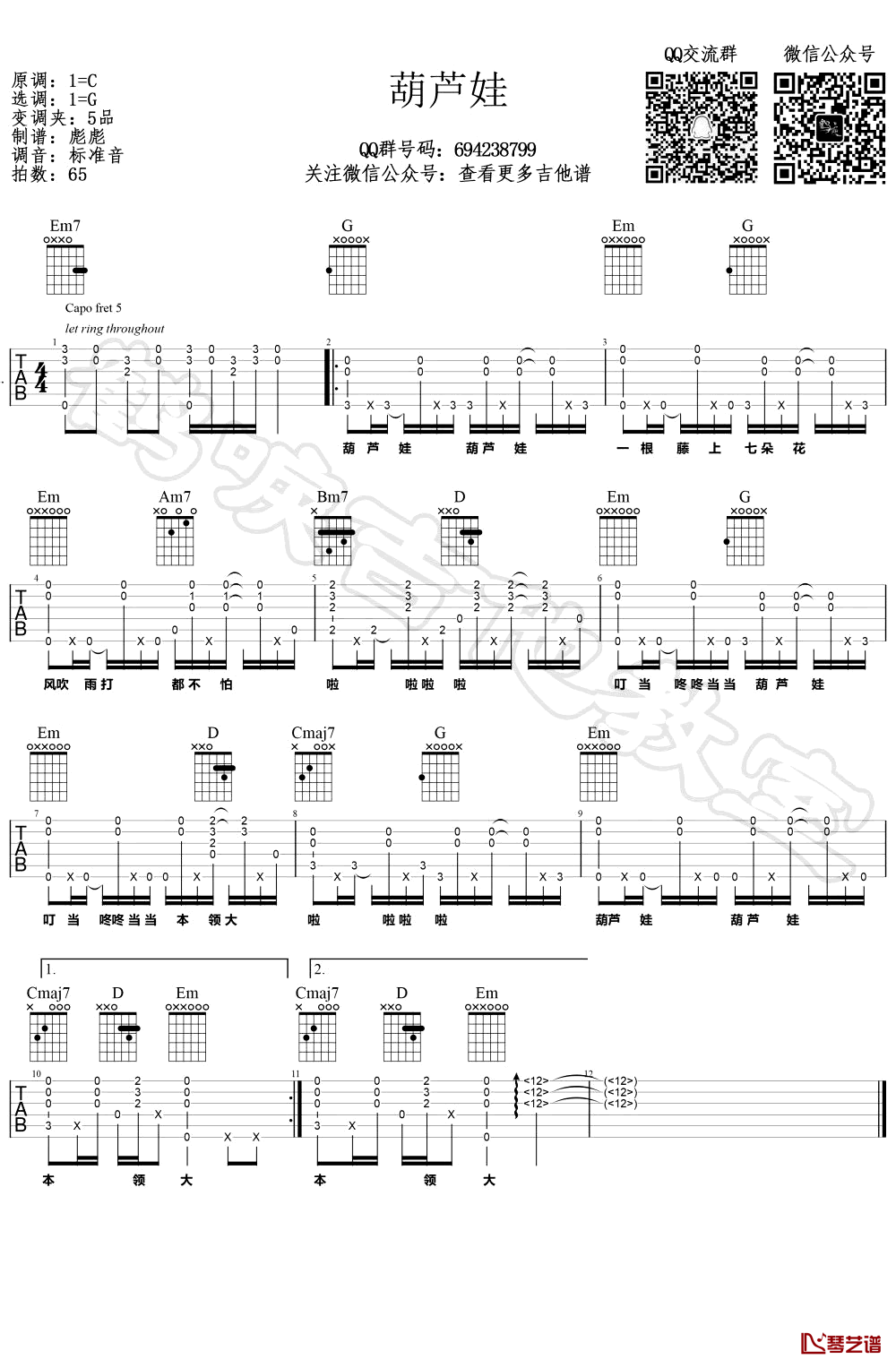 葫芦娃六线谱