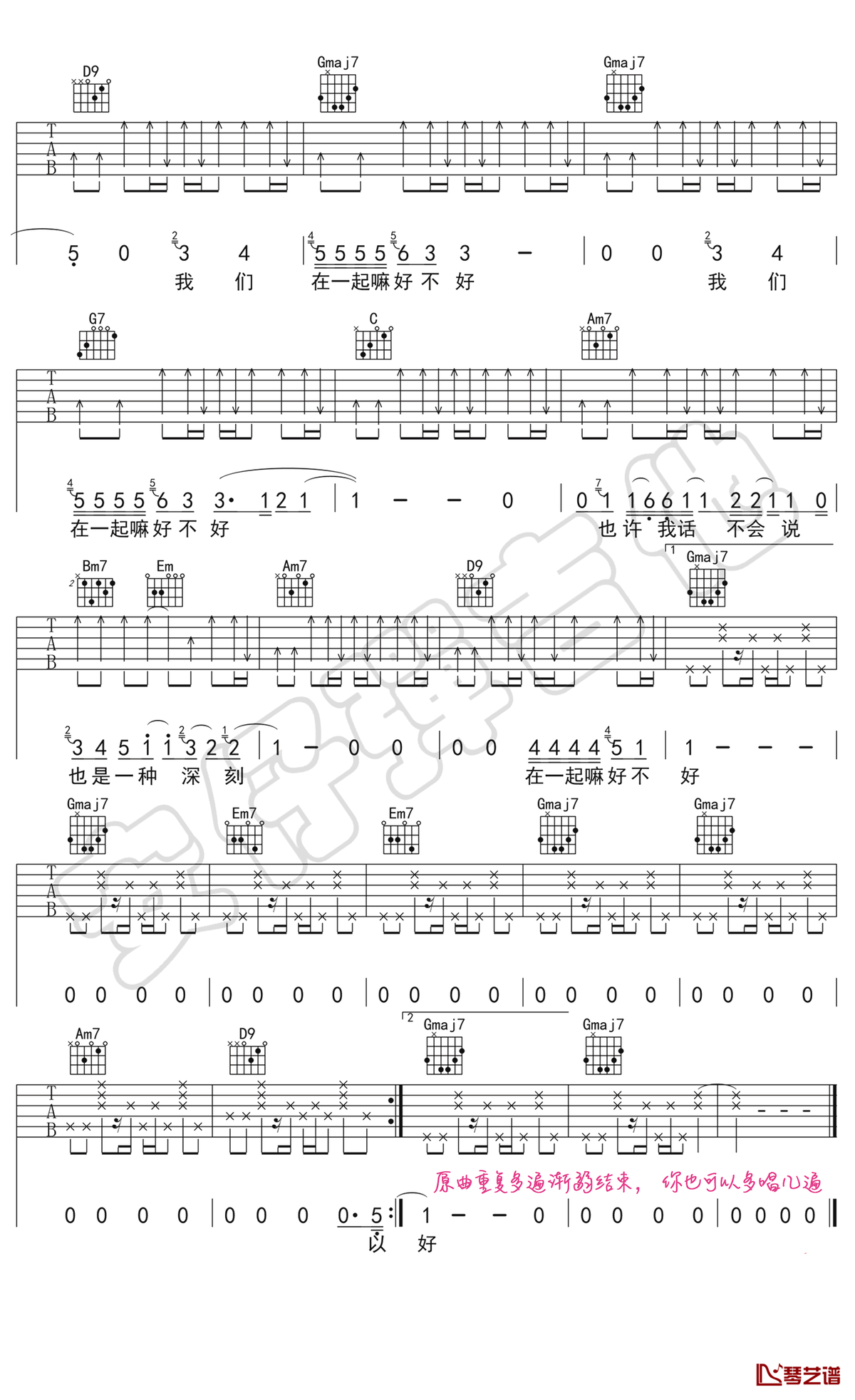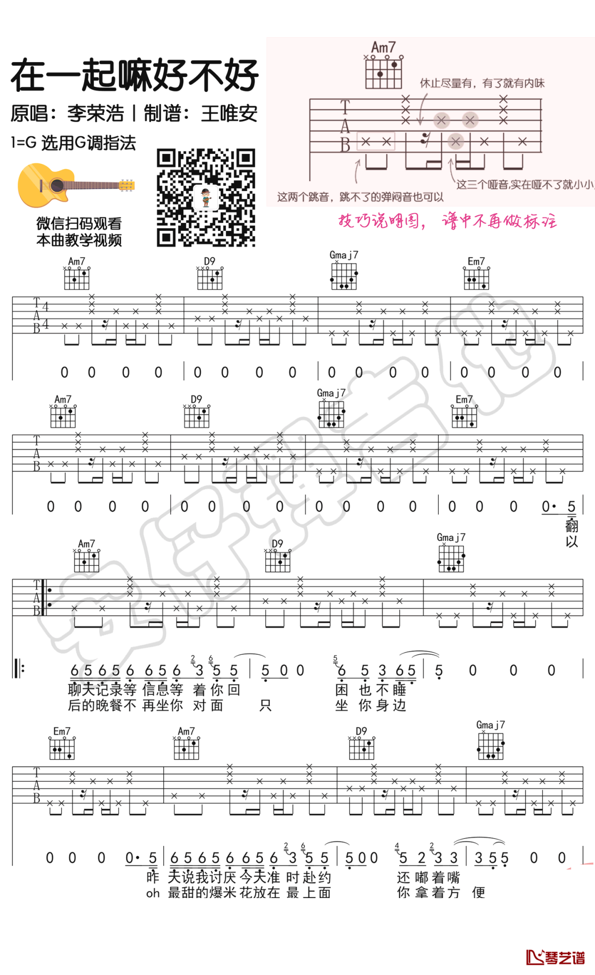 李荣浩《在一起嘛好不好》吉他谱六线谱附教学视频