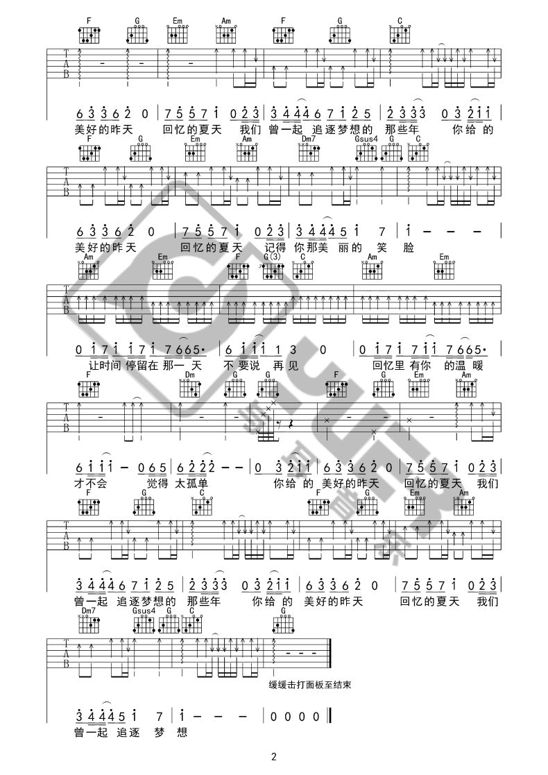 美好的昨天吉他谱