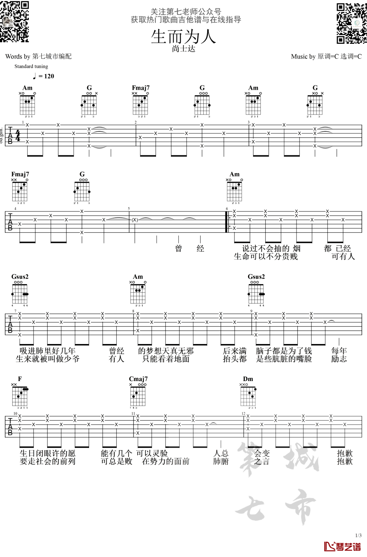 尚士达《生而为人》吉他谱六线谱