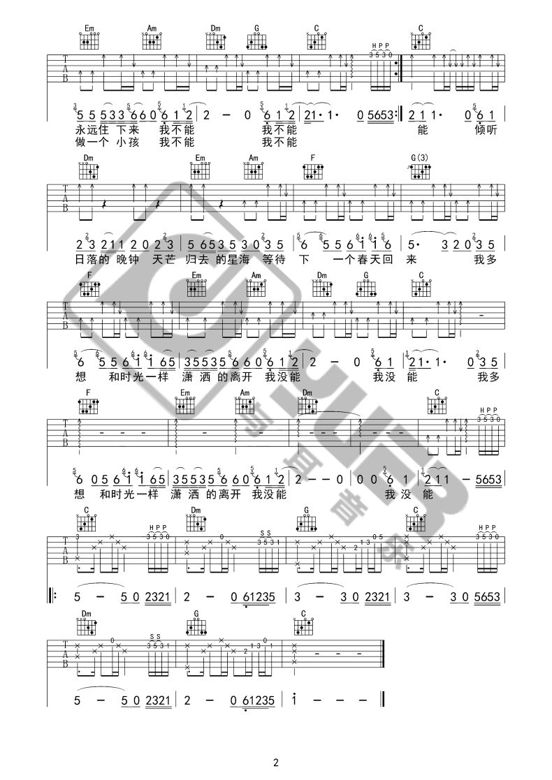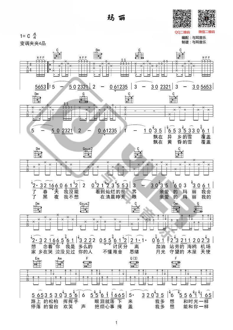 《玛丽》 吉他谱六线谱C调弹唱谱