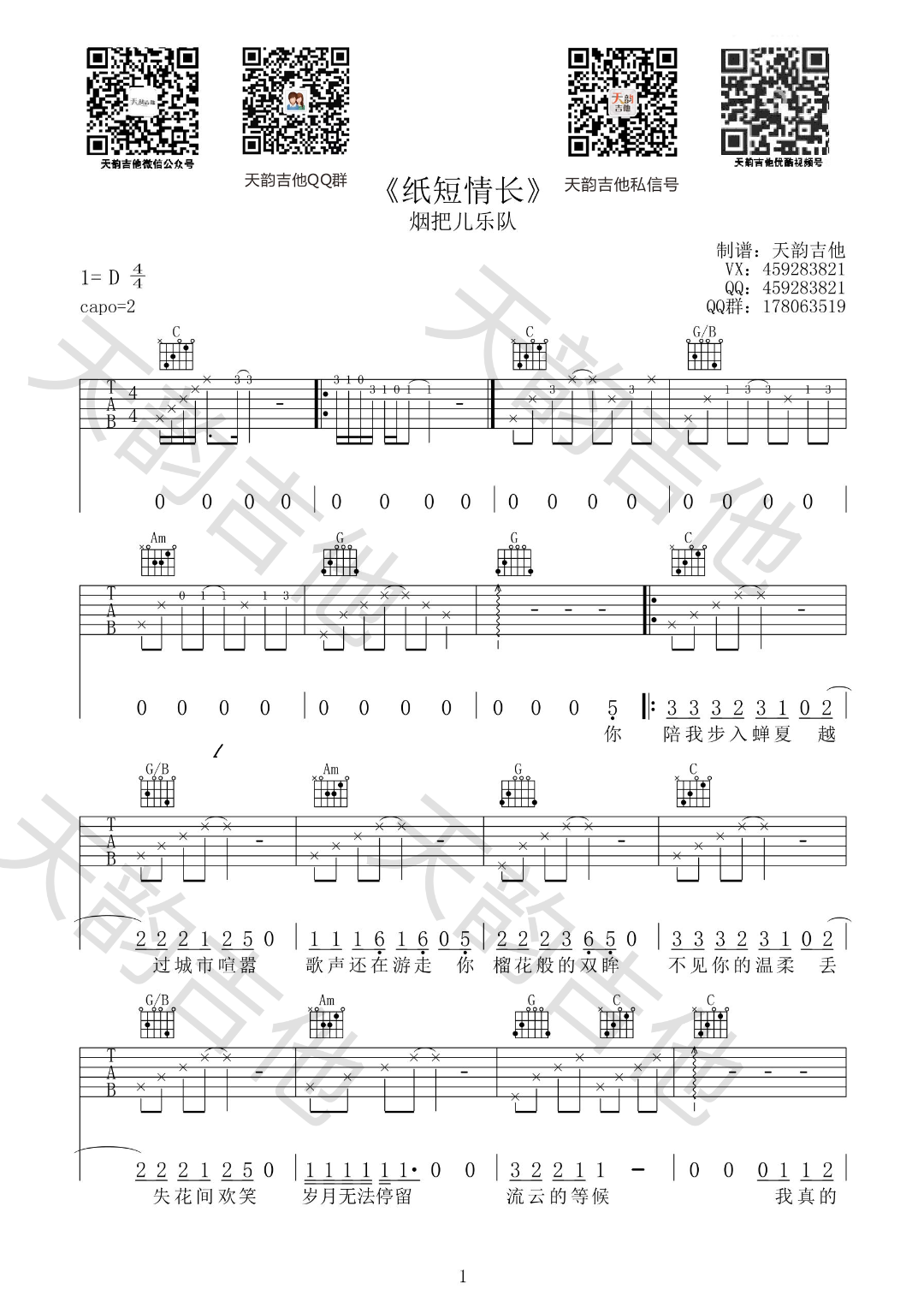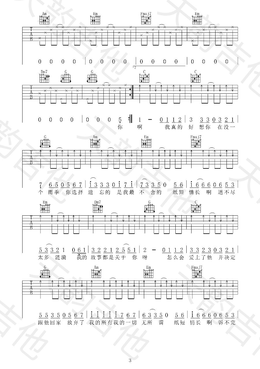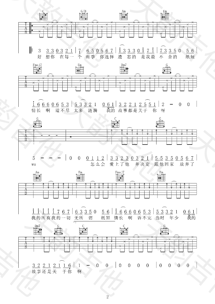 纸短情长吉他谱
