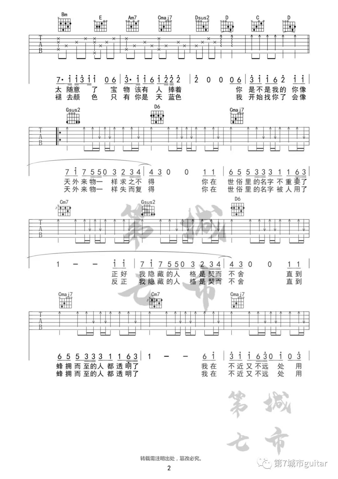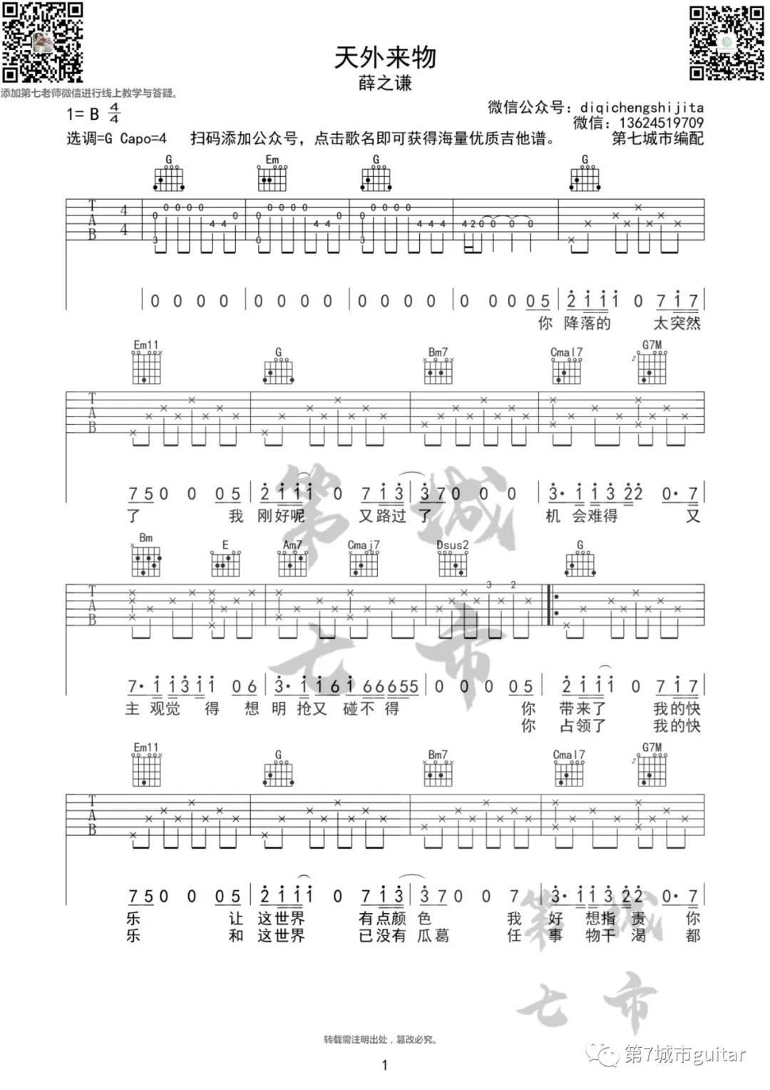 薛之谦《天外来物》吉他谱六线谱原调B调
