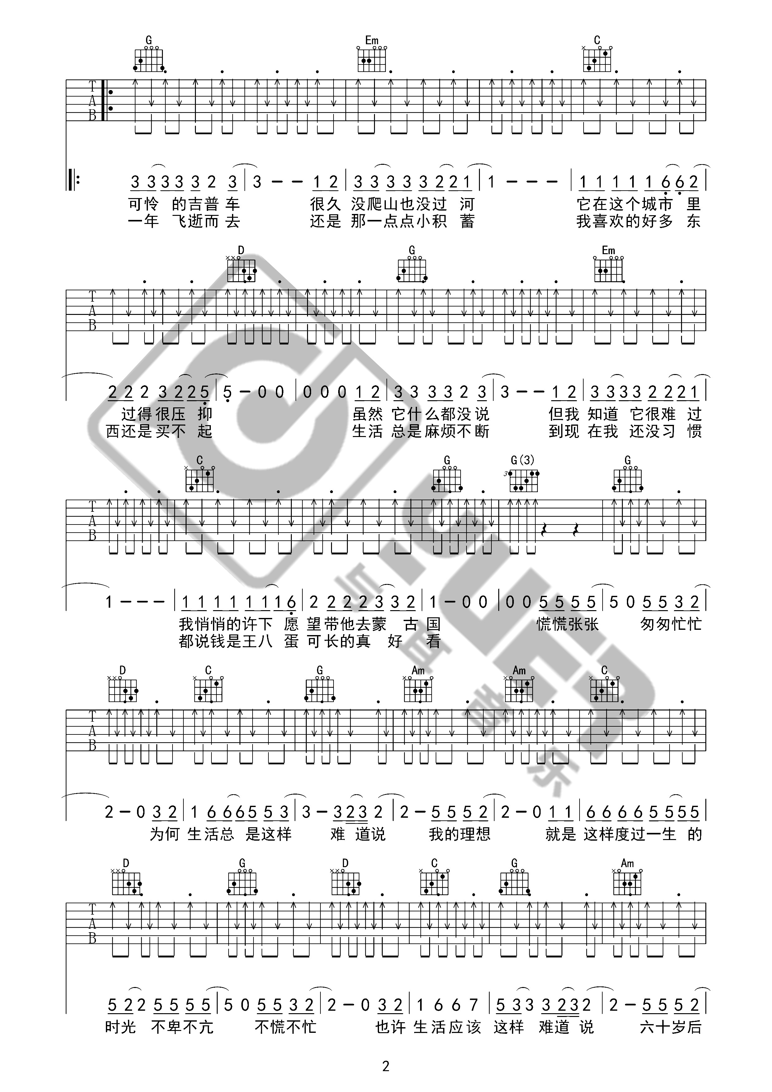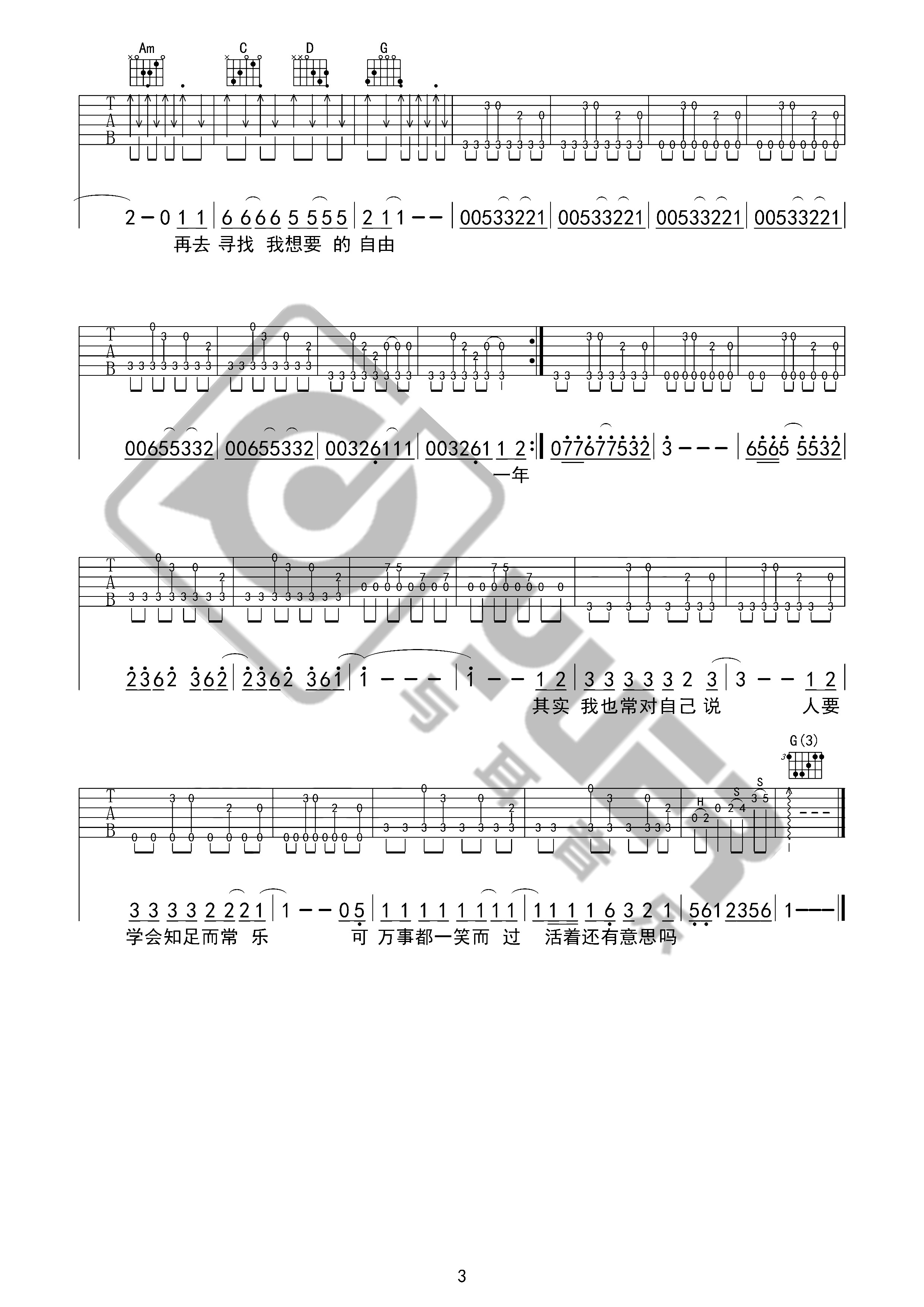 郝云《活着》吉他谱G调弹唱谱