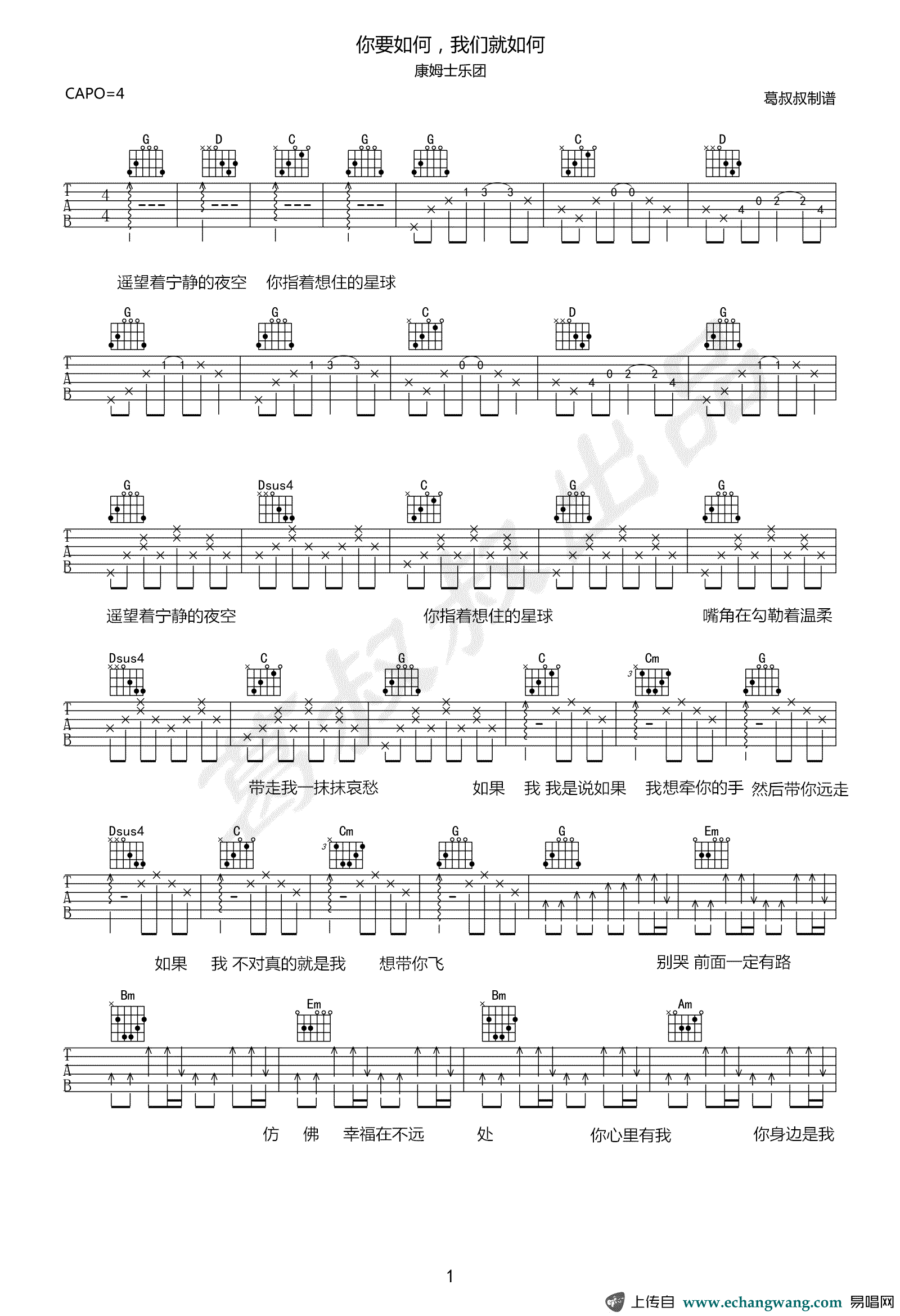 一遍又一遍的听的时候,让人感受到了那份想说不好说的温柔与温暖。想恋爱,会有人与你立黄昏,就像歌里唱的,你要如何,我们就如何。这首歌的和弦不难,重点是要掌握好右手的情感表达,毕竟摇滚的节奏在右手,灵魂在左手。