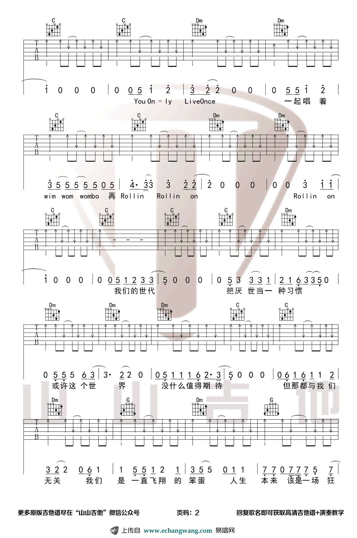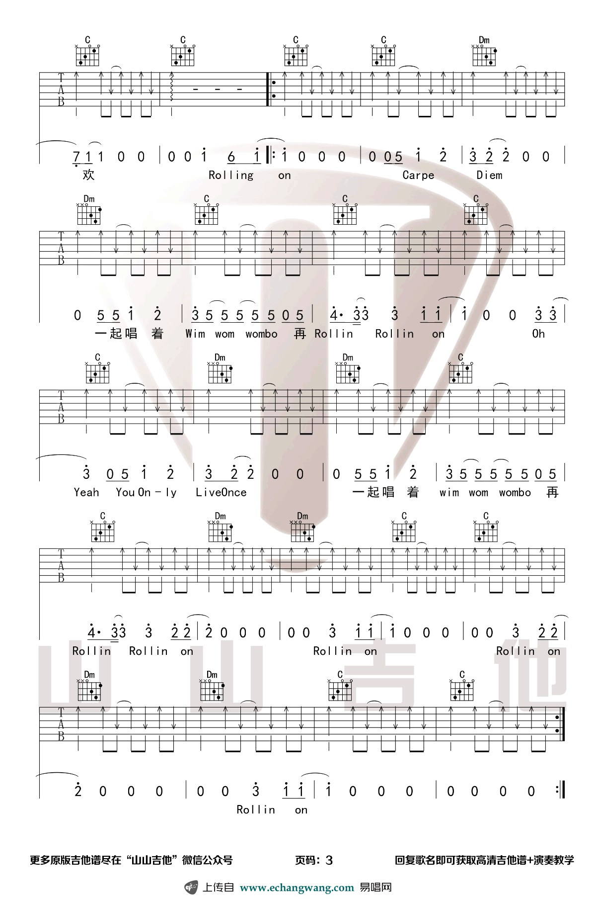 椅子乐团《Rollin'on》吉他谱选调C六线谱