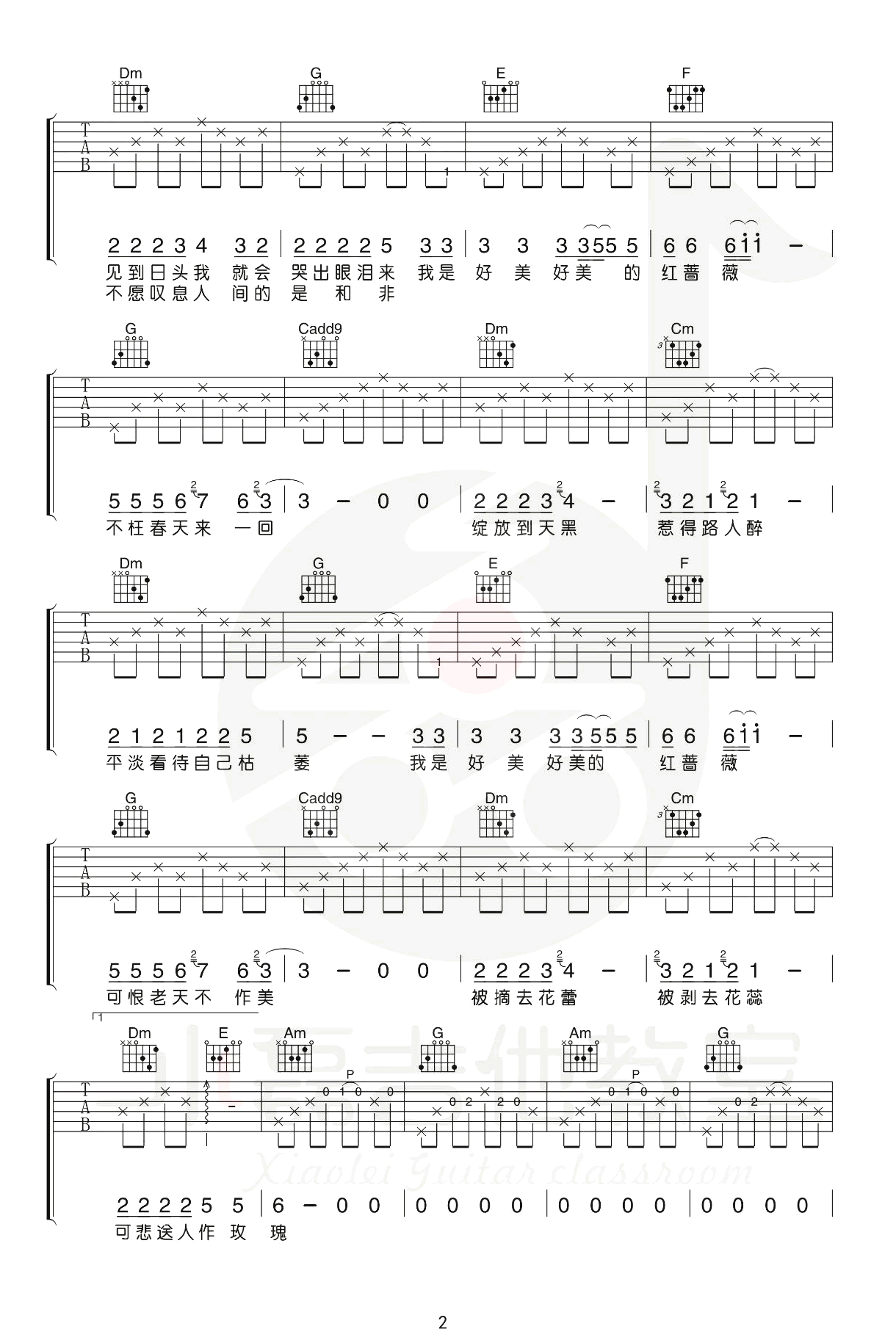 王宝与正午阳光《红蔷薇》吉他谱选调C六线谱