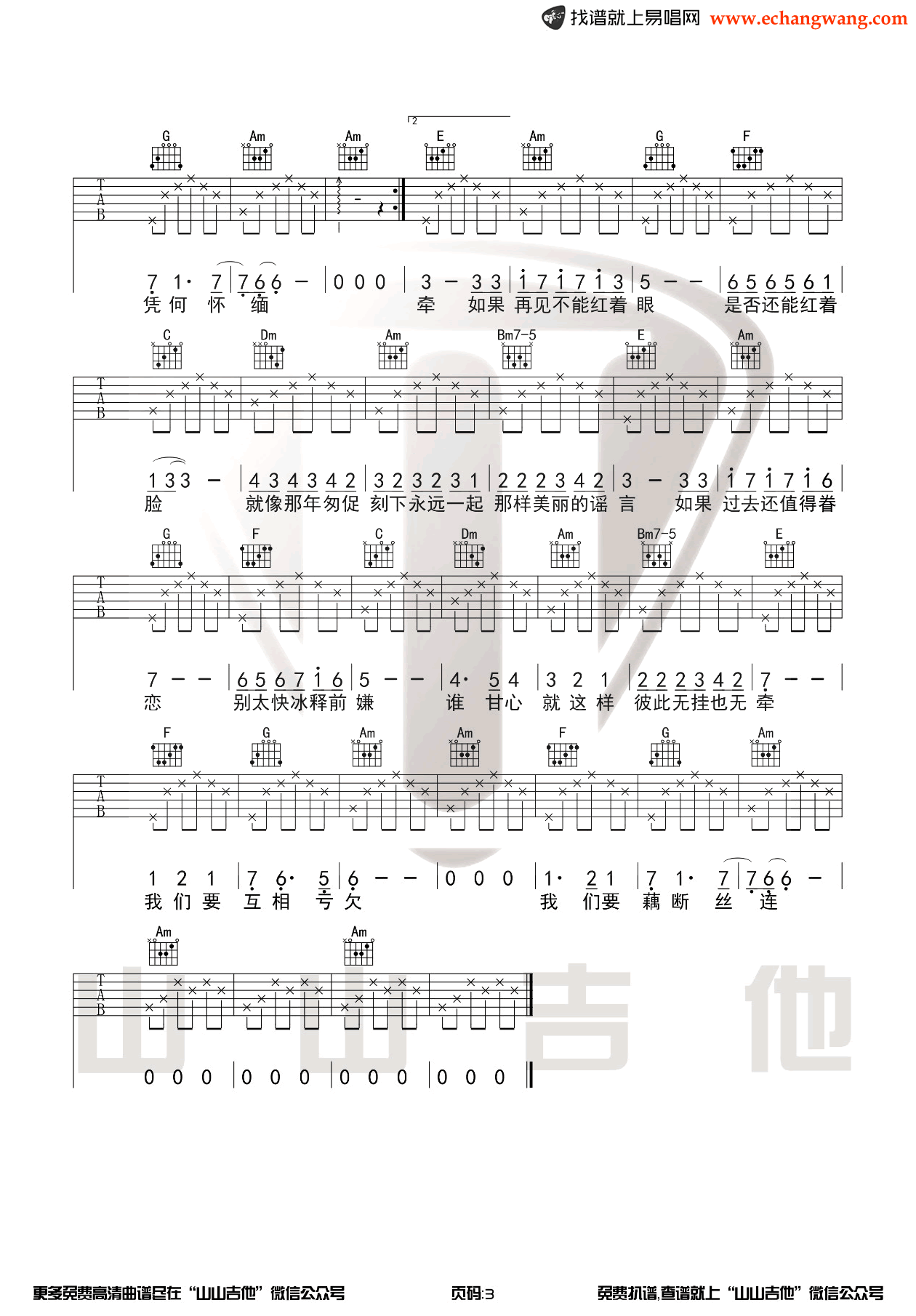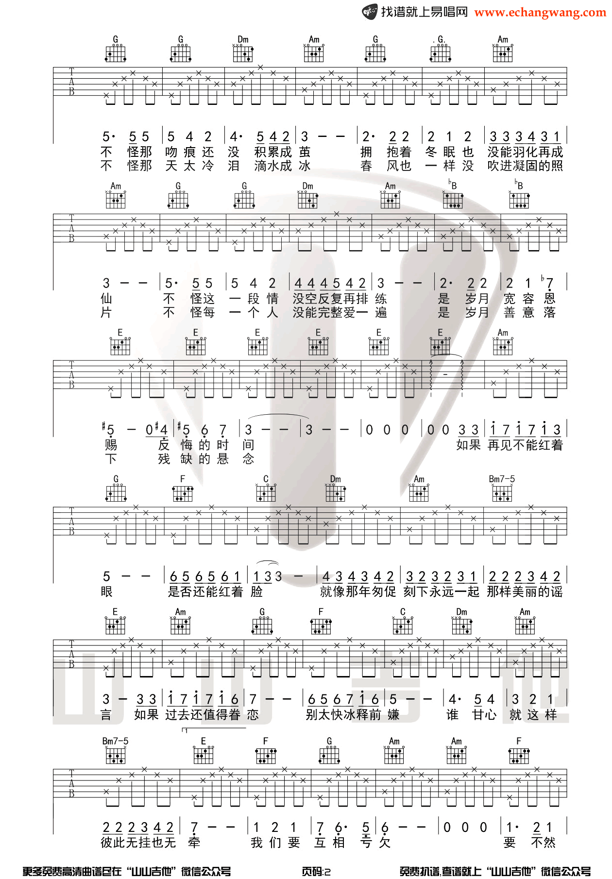 王菲《匆匆那年》吉他谱六线谱C调