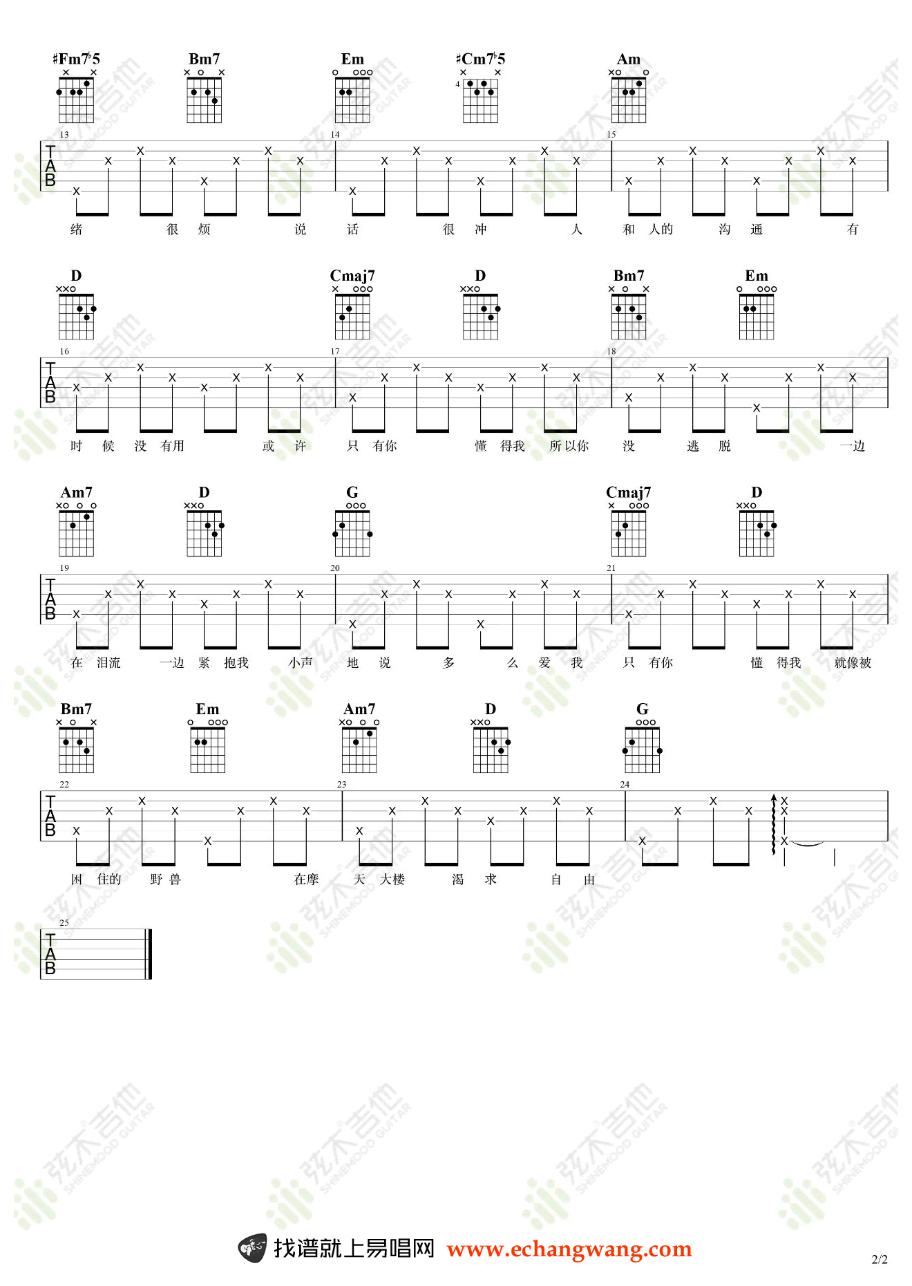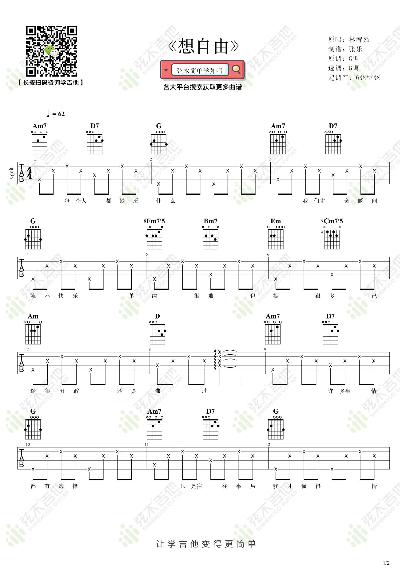 林宥嘉《想自由》吉他谱六线谱