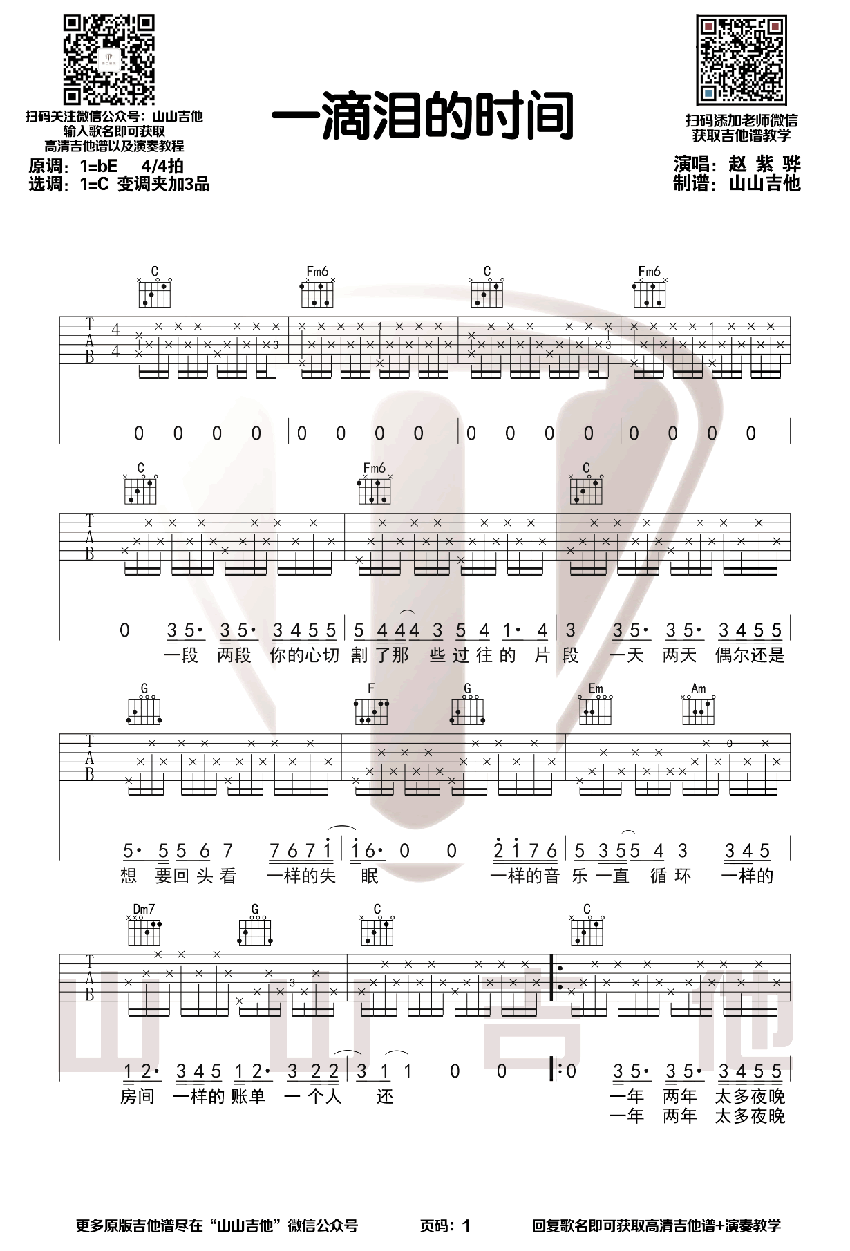 赵紫骅《一滴泪的时间》吉他谱选调C六线谱