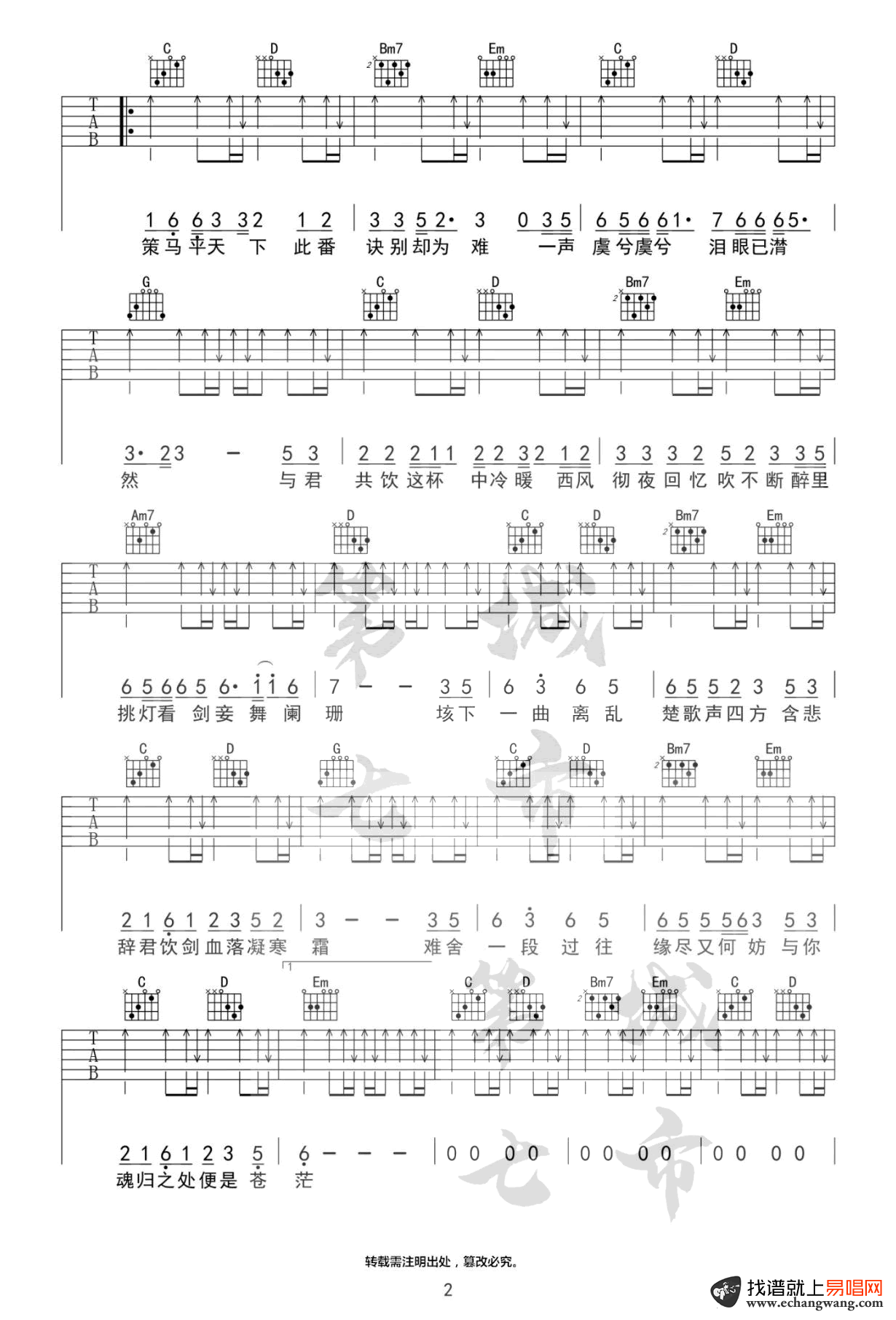 闻人听书《虞兮叹》吉他谱六线谱