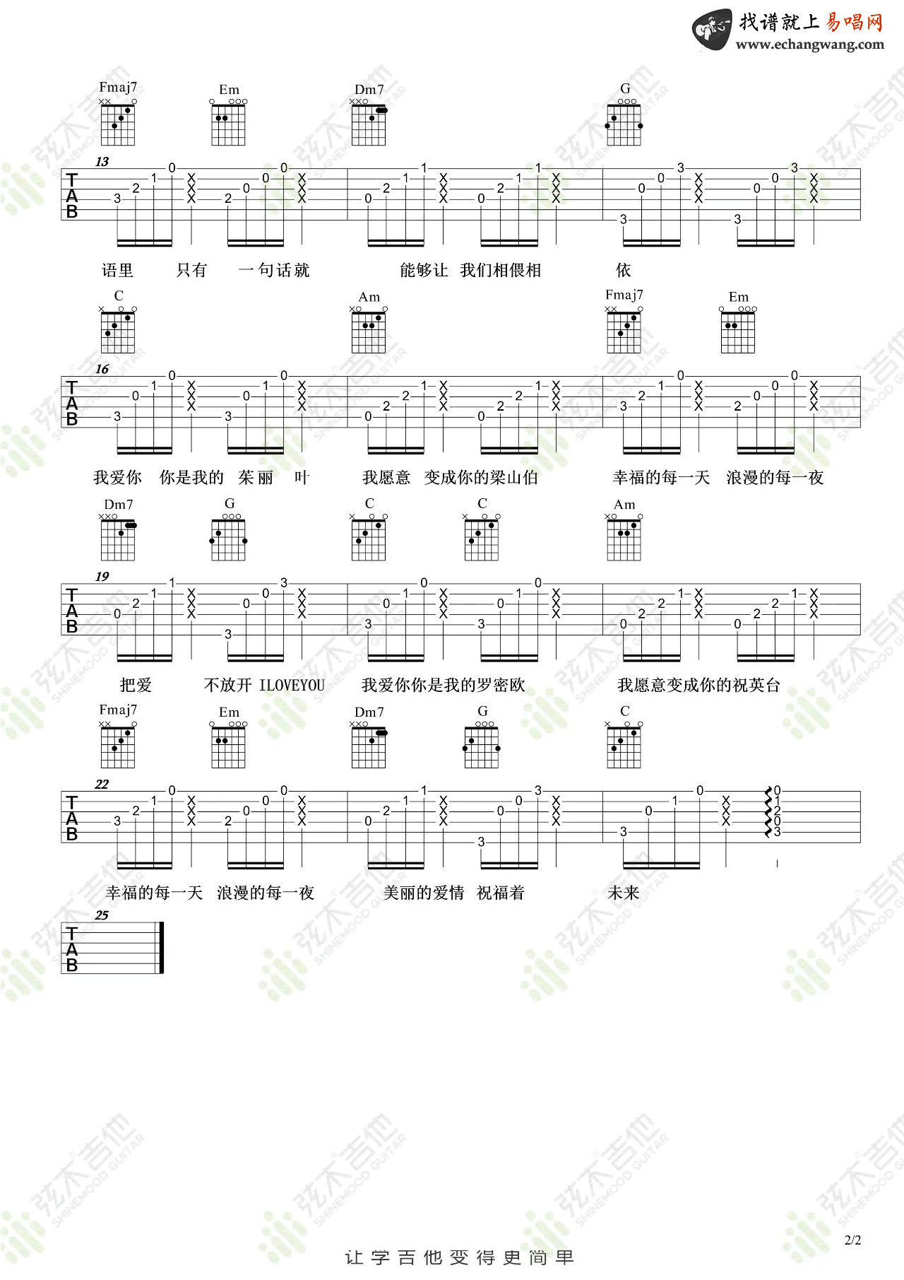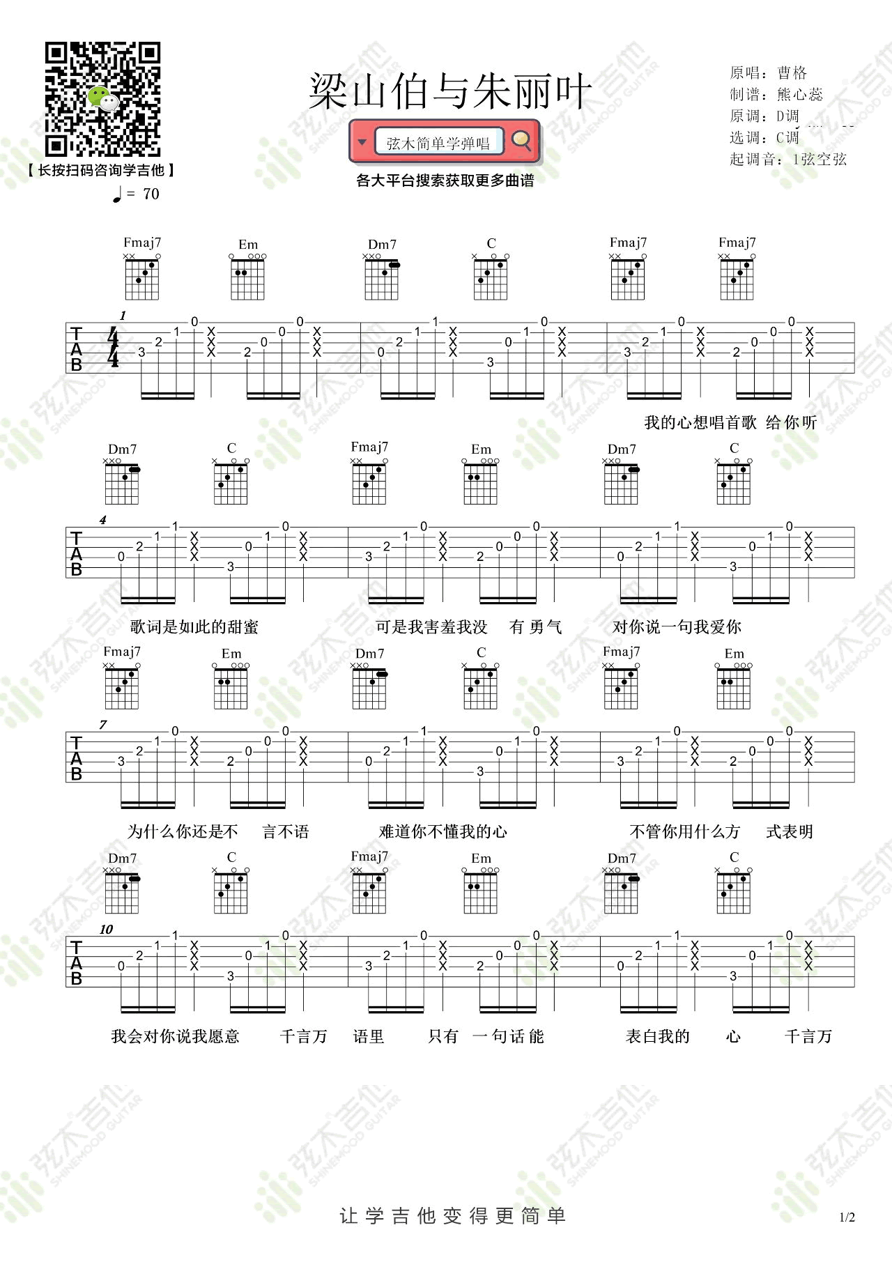 曹格《梁山伯与茱丽叶》吉他谱六线谱