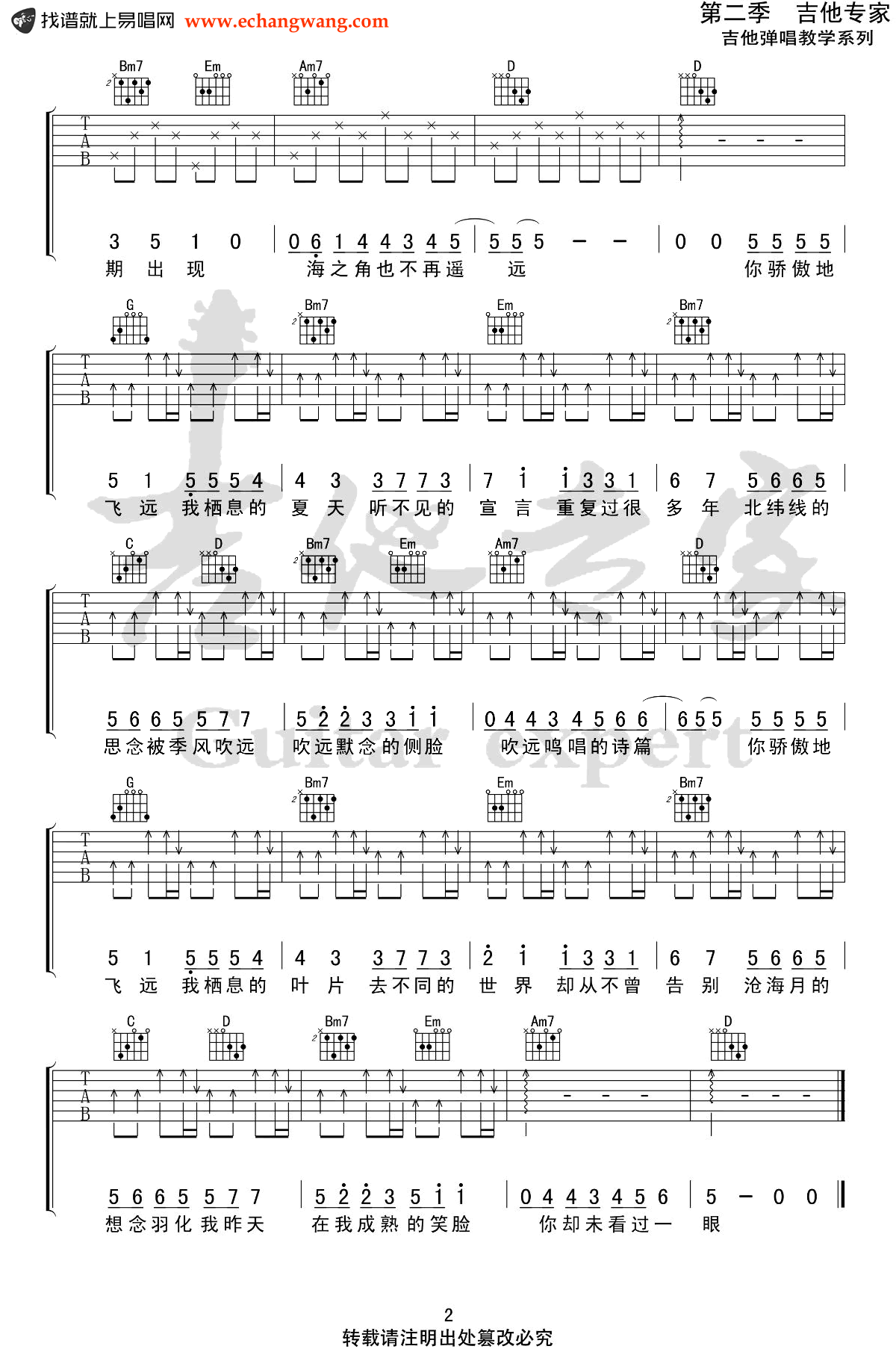 《飞鸟和蝉》吉他谱,任然的一首热门抖音歌曲,飞鸟和蝉吉他弹唱谱,简易版编配,原调降B,变调夹夹三品,选用G调指法。 这首歌曲本身也不难,适合吉他初学者上手。喜欢这首歌曲的琴友们,也可以参照页面下方我们为大家准备的不同编配版本的谱例练习。