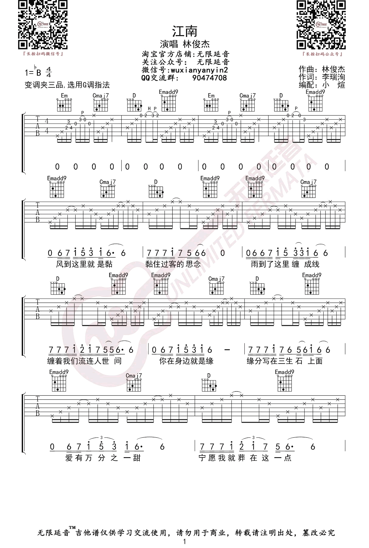 《江南》吉他谱,林俊杰的一首经典代表歌曲,江南吉他弹唱谱,原调降B,曲谱选用G调指法来编配,琴友们选择变调夹夹第三品。感谢无限延音制谱分享,《江南》是林俊杰演唱的一首歌曲,由林秋离作词,林俊杰作曲,蔡政勋、陈建玮编曲 [1] ,于2004年5月19日在全亚洲首播 [15] ,收录在林俊杰2004年6月4日由海蝶音乐发行的专辑《第二天堂》中 ,2005年,该歌曲获得CCTV-MTV音乐盛典年度最佳单曲、百事音乐风云榜港台十大金曲、第12届中国歌曲排行榜港台最受欢迎歌曲等奖项。