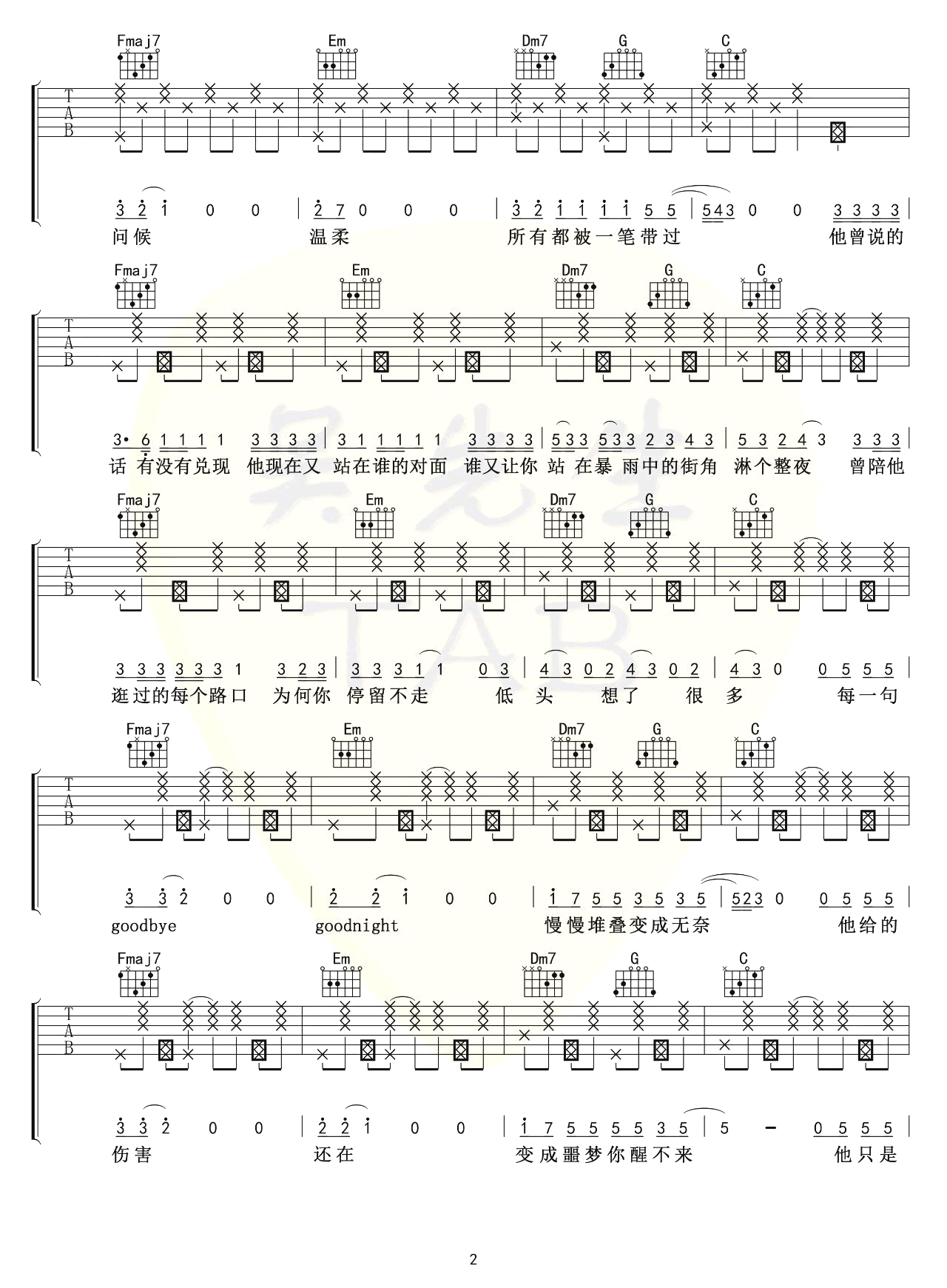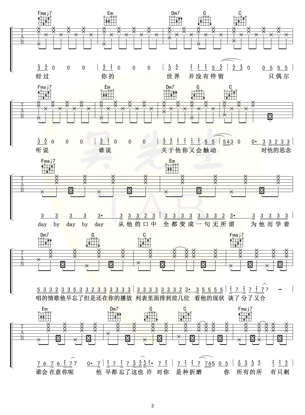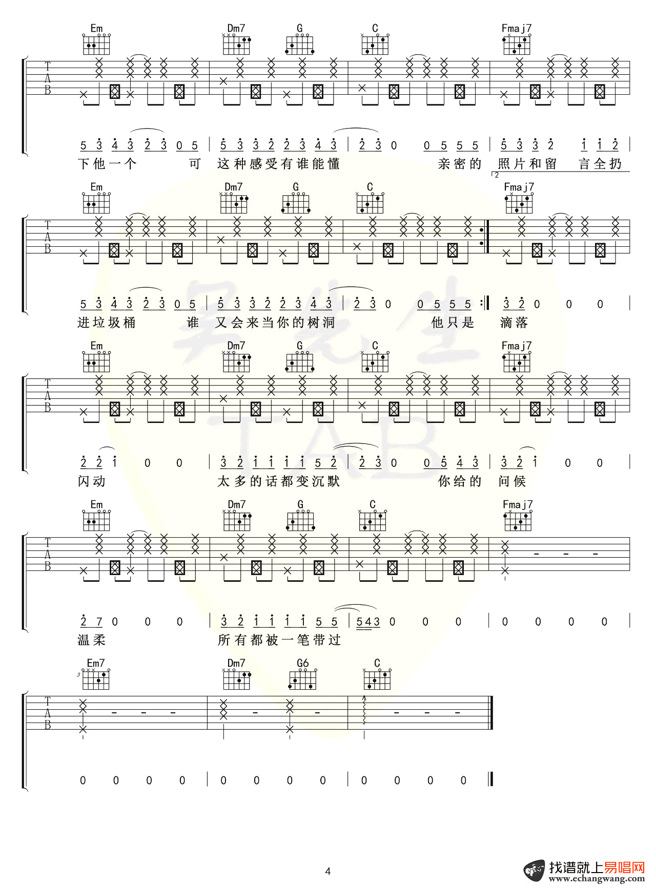 他只是经过吉他谱六线谱