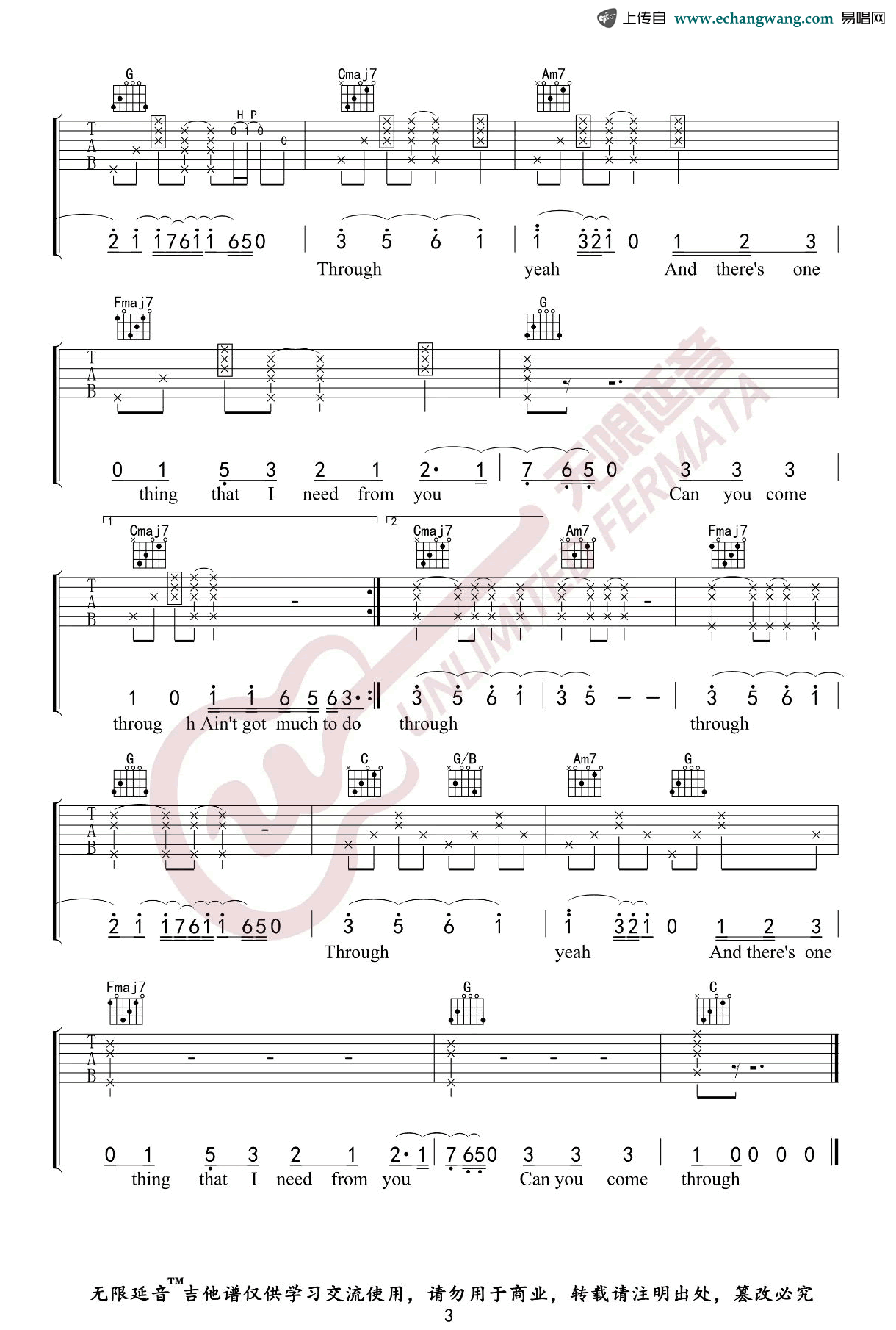 《Comethru》吉他谱,Jeremy Zucker演唱的一首节奏舒缓的英文歌曲,Comethru六线谱,C调弹唱谱,三张弹唱图片谱,无限延音制谱分享美国新秀Jeremy Zucker温馨单曲,磁性嗓音中略带着一丝哑味,一下子能够抓住人的耳朵。生活中我们难免会遇到不顺心的事情,希望听到这首歌的你能在温柔的歌声中能整理好心情,忘掉烦恼。