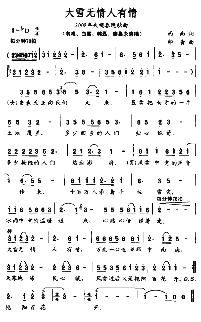 大雪无情人有情简谱-韦唯/白雪/韩磊/廖昌永演唱歌曲-小叶子159曲谱