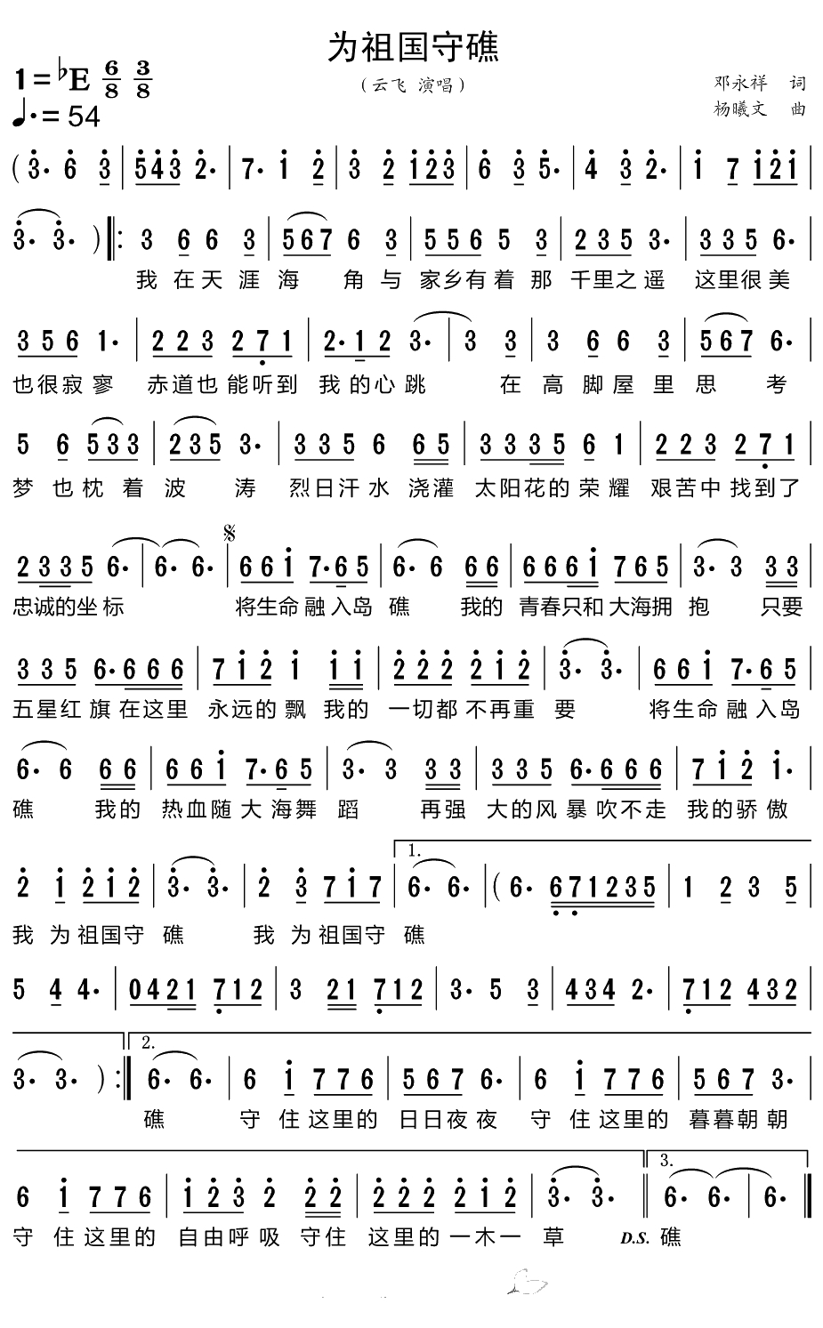 为祖国守礁简谱-云飞演唱歌曲-小叶子159曲谱