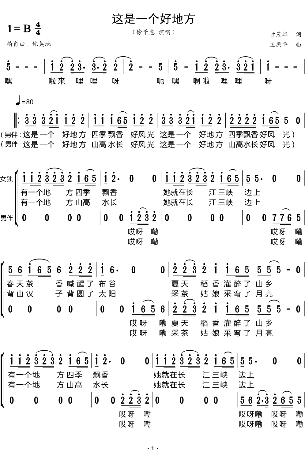 这是一个好地方简谱-徐千惠演唱歌曲-小叶子159曲谱